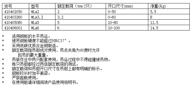 WLA型鋼板起重鉗